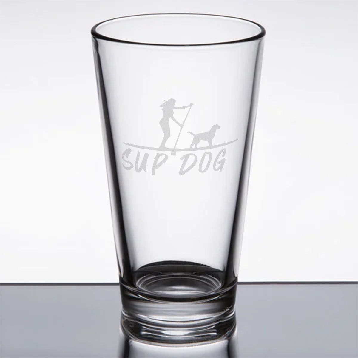 Paddle into chill vibes with your best fur-end in our “SUP Dog Days” glass! This rad design showcases a lady and her trusty pup takin' it easy on a stand-up paddleboard, just coastin' through the calm rivers during the good ol’ dog days of summer. Below them, “SUP Dog” is etched like they’re callin’ out to all the other cool canines on the shore. Raise a toast to laid-back river adventures with your four-legged sidekick! Whether you're sippin' on lemonade or some refreshing iced tea, this glass is a gentle current of fun and sun! Cheers to the SUP-er companions in our lives!